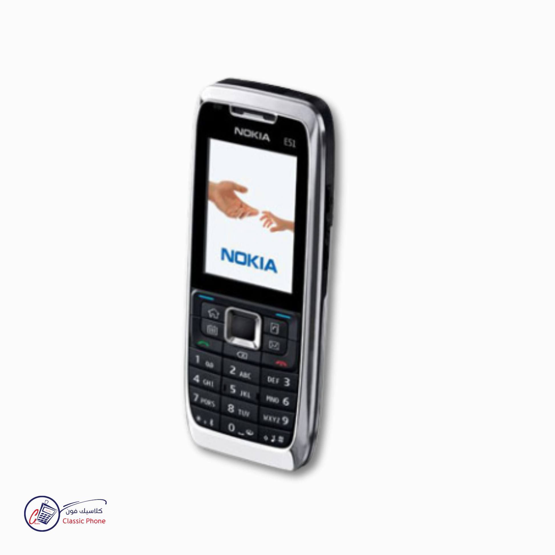 The Nokia E51 (released 2007) is a compact business phone with stainless-steel body, featuring Symbian S60 v3.1, built-in Wi‑Fi, 3G support, and expandable memory up to 32 GB via microSD.